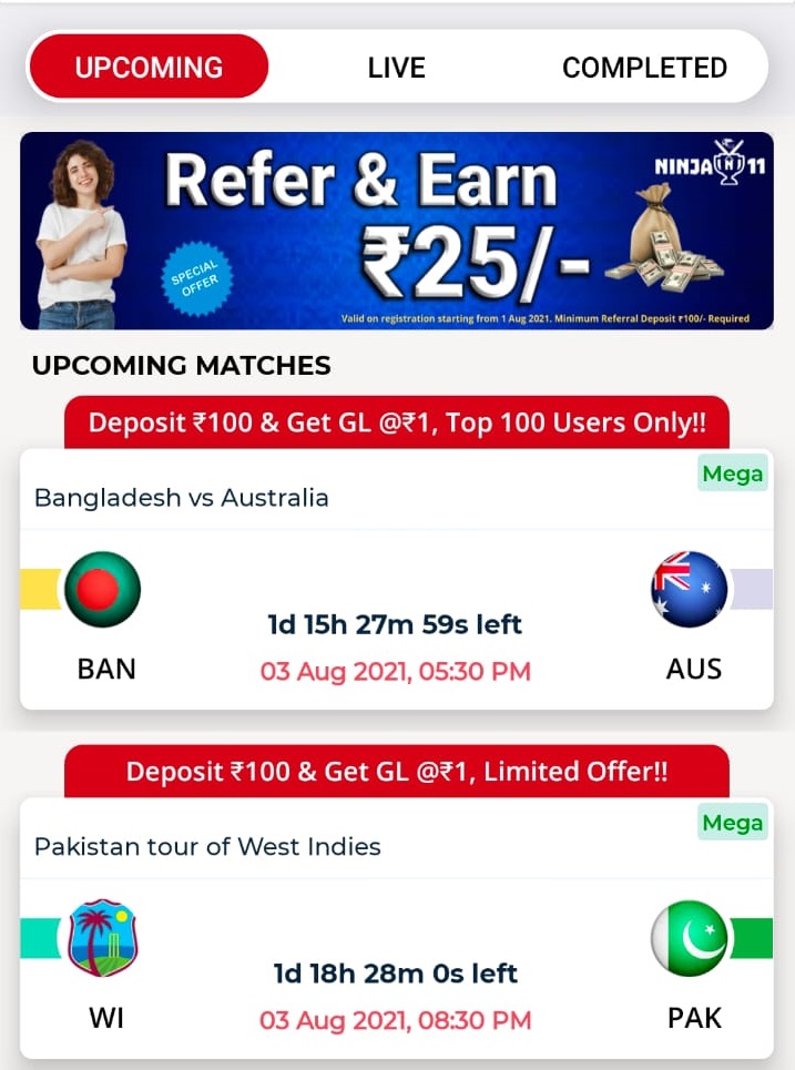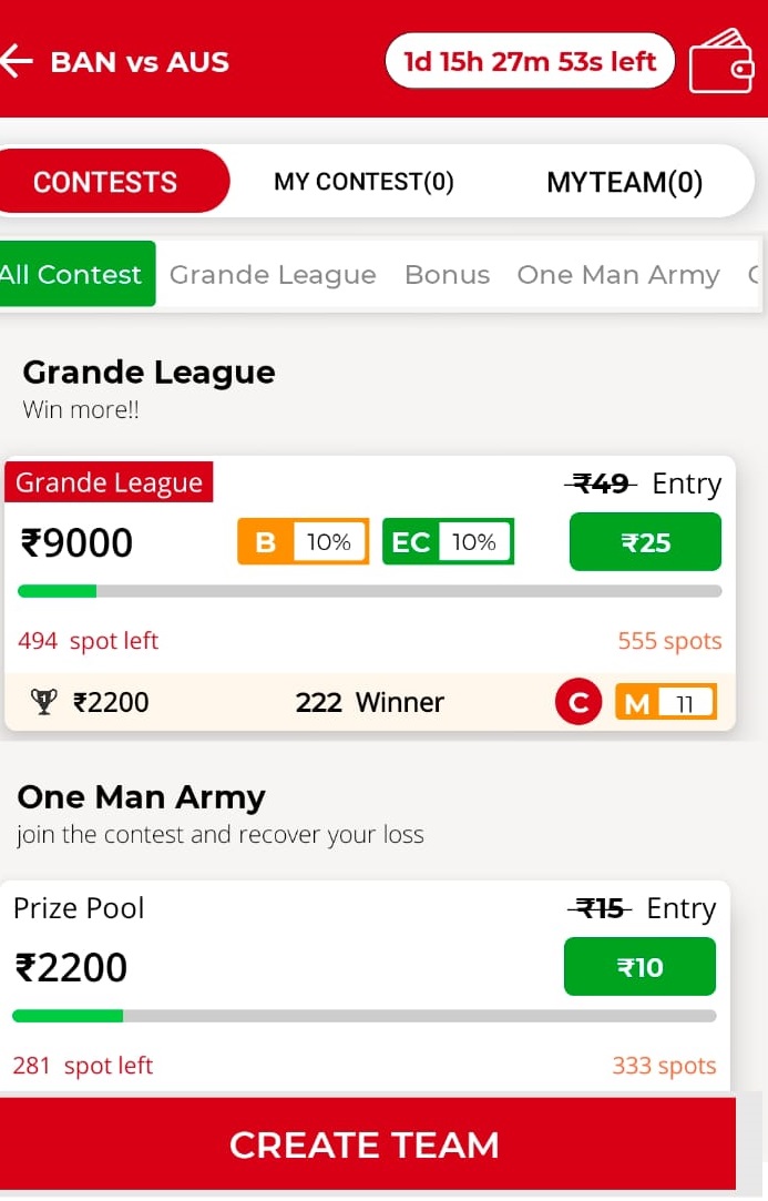 All ContestHere, You will get list all contest including Mega Contest, Bonus Contest, Small League and Free GiveAway.