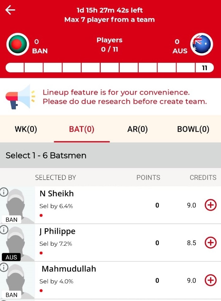 Your Favourite MatchHere, You will get list of all upcoming matches. Select Match you want to play.